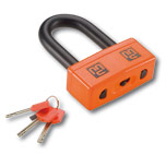 Padlock charactersed by a sturdy 16 mm U-lock with finish in PVC (18 mm) of orange colour to be immediately identified …